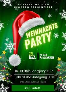 Zum ersten Mal veranstaltet die SV eine Weihnachstfeier für die Schülerinnen und Schüler. Der Kartenverkauf startet am Montag, 15.12.2025.
