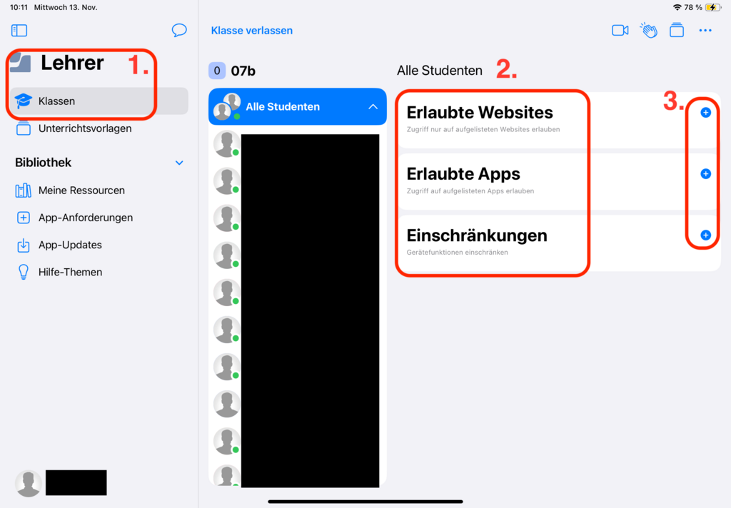 !Die folgenden Schritte führt die Lehrkraft auf ihrem Geräten durch!