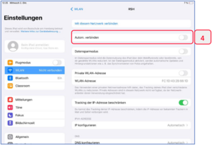 Ist dies nicht der Fall, ist dies ein deutliches Indiz darauf, dass sich der Schüler dem Netz der Schule zu entziehen versuchte. “Automatisch verbinden” wird sich NIEMALS selbst deaktivieren. Dies ist technisch nicht möglich! Sprecht in diesem Fall eine Verwarnung aus oder konfisziert bei “Wiederholungstätern” ggf. das iPad für den Rest der Unterrichtsstunde.