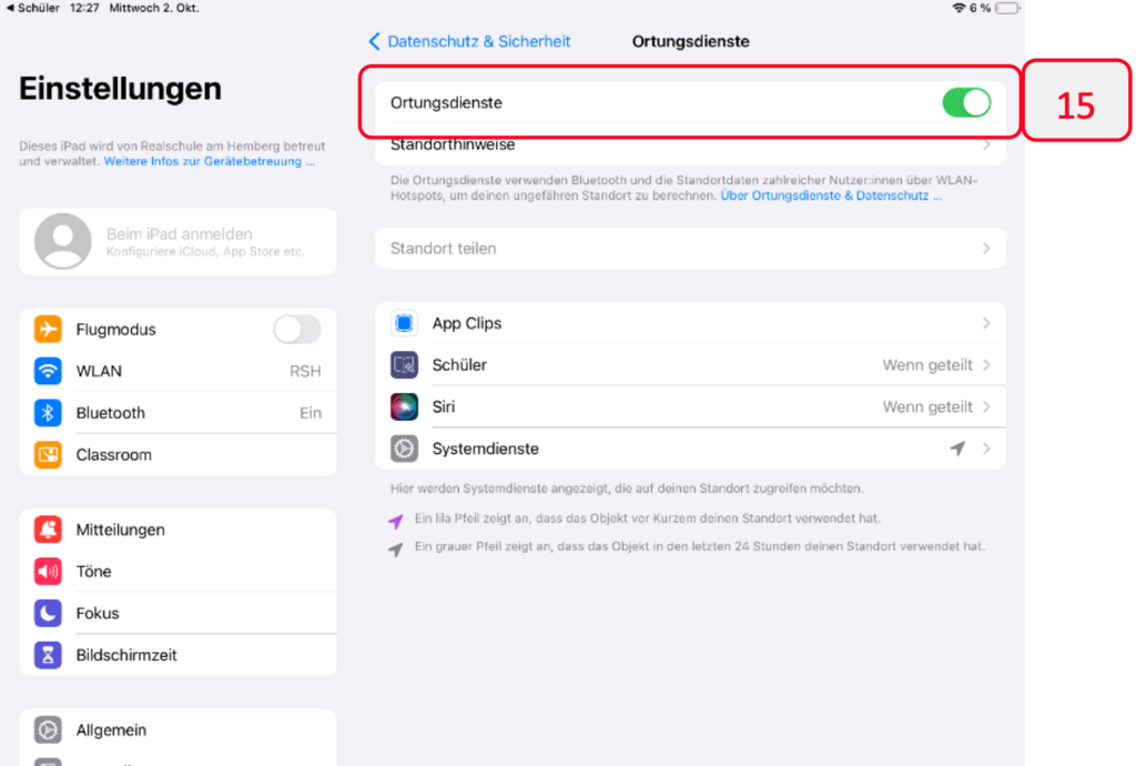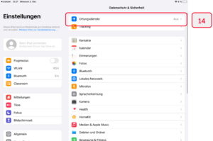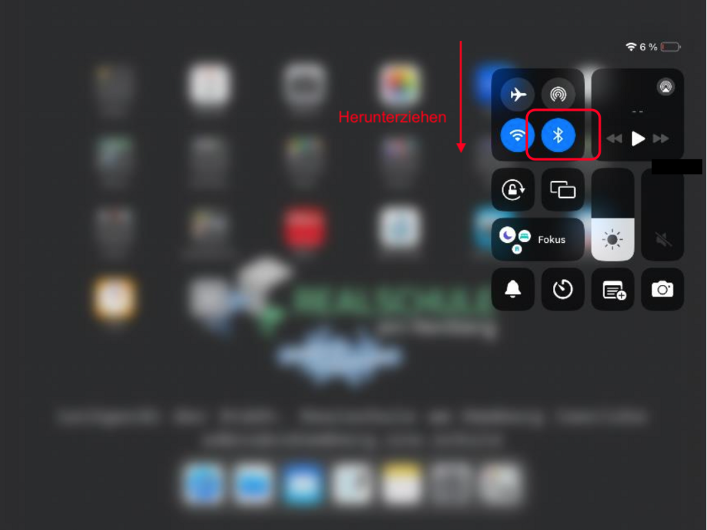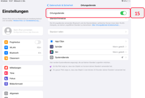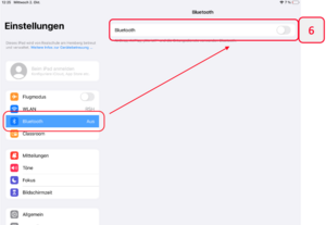 Als nächstes überprüft ihr, ob „Bluetooth“ aktiviert ist. Die Schüler dürfen dieses in der Schule nie ausschalten (siehe auch die iPad-Regeln!).
