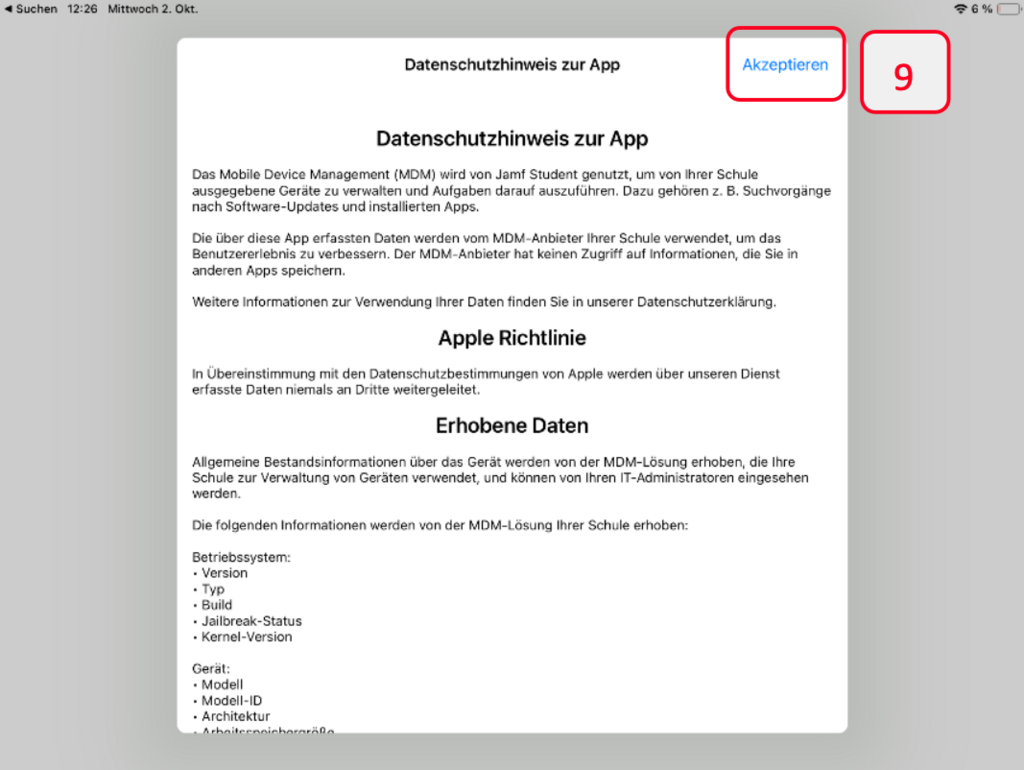 Die Unterschrift der Eltern und der Schüler unter den iPad-Regeln ist jährlich von den Klassenleitungen einzuholen. Ohne diese Unterschriften kann keine Nutzungserlaubnis erteilt werden – das iPad der Schülerin / des Schülers würde gesperrt!